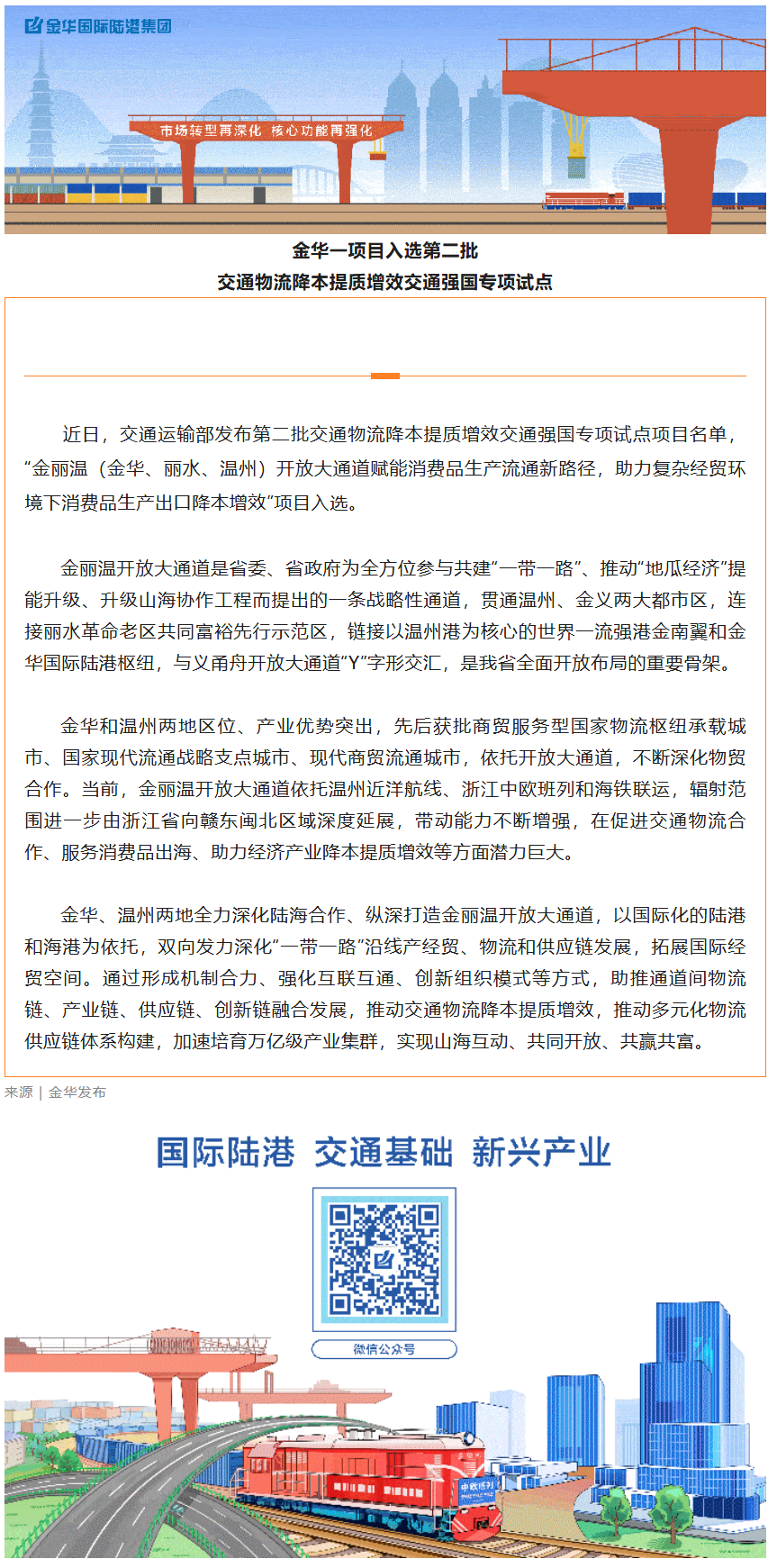 金華一項(xiàng)目入選第二批交通物流降本提質(zhì)增效交通強(qiáng)國(guó)專項(xiàng)試點(diǎn)